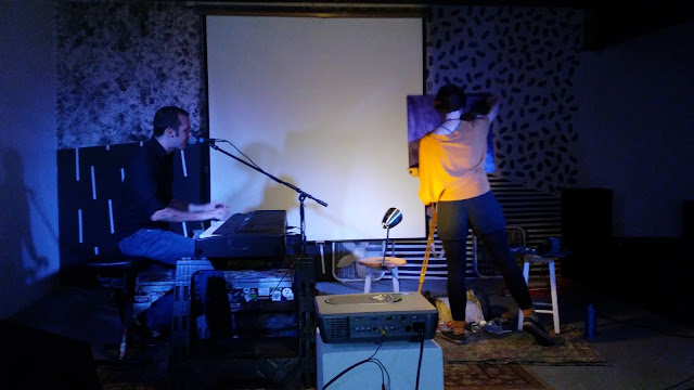 I’ve written a decent number of music reviews in my life, and my biggest complaint is, frustratingly, a lack of originality. In a time where every band and artist can release a smattering of videos, creating something that stands out gets harder by the day as new ideas — for better or worse — are constantly available on social media. Pocket Vinyl managed to take the art of mixed media, stand it on its head, and perfect it on their visit to Sugar City last Thursday, September 7th. The evening consisted of a 30-minute performance by the band, which always includes a painting created live by artist Elizabeth Jancewicz. The performance was in support of the band’s new documentary, Drive. Play. Sleep. Pocket Vinyl’s current tour normally involves just showing the movie, but for this evening, they were asked if they could perform in addition to the screening to the movie. It was a smart choice.