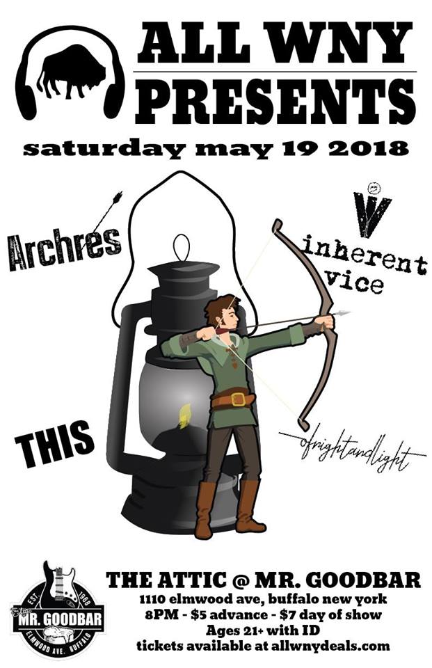 BUFFALO — All WNY News & Radio return to the Attic at Mr. Goodbar May 19, and we’re bringing along Archres, Inherent Vice – band, THIS, and Of Night And Light. Come join us!