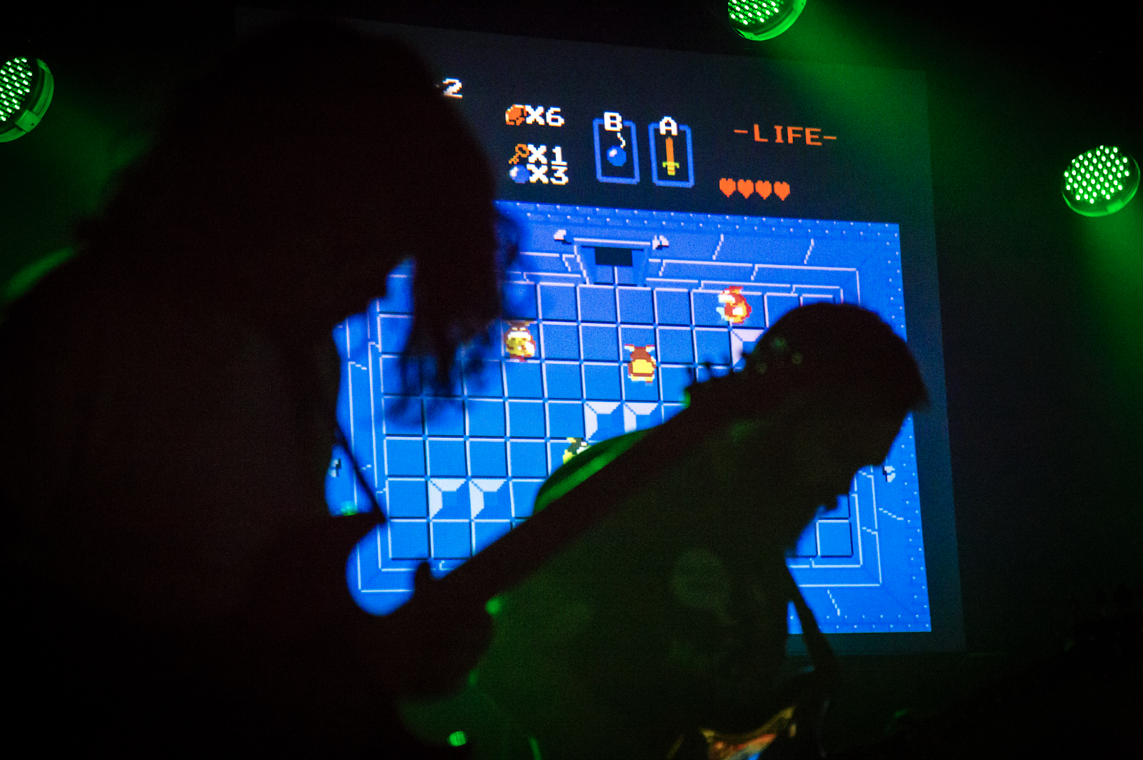 If you’re of a certain age and had a youth filled with Nintendo games like I did, there’s a certain something about hearing the theme music from those games again. For those who aren’t gamers, think the theme from the original Jurassic Park. If you were a kid when that movie came out, that theme can give you goosebumps. That’s how I feel about Nintendo-era chiptune music. And last Sunday, April 15th at the Evening Star, a roomful of nostalgia-seekers re-lived classic Nintendo themes thanks to Danimal Cannon’s sweet chiptune sounds and Bit Brigade’s heavy prog-rock interpretation of the music from The Legend of Zelda series.