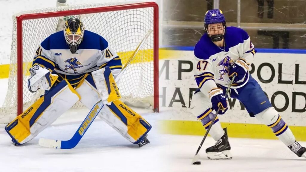 Both players were honored after they helped the Golden Griffins kickoff the 2025-26 campaign last weekend with a sweep of North Country foes Clarkson and St. Lawrence at LECOM Harborcenter.