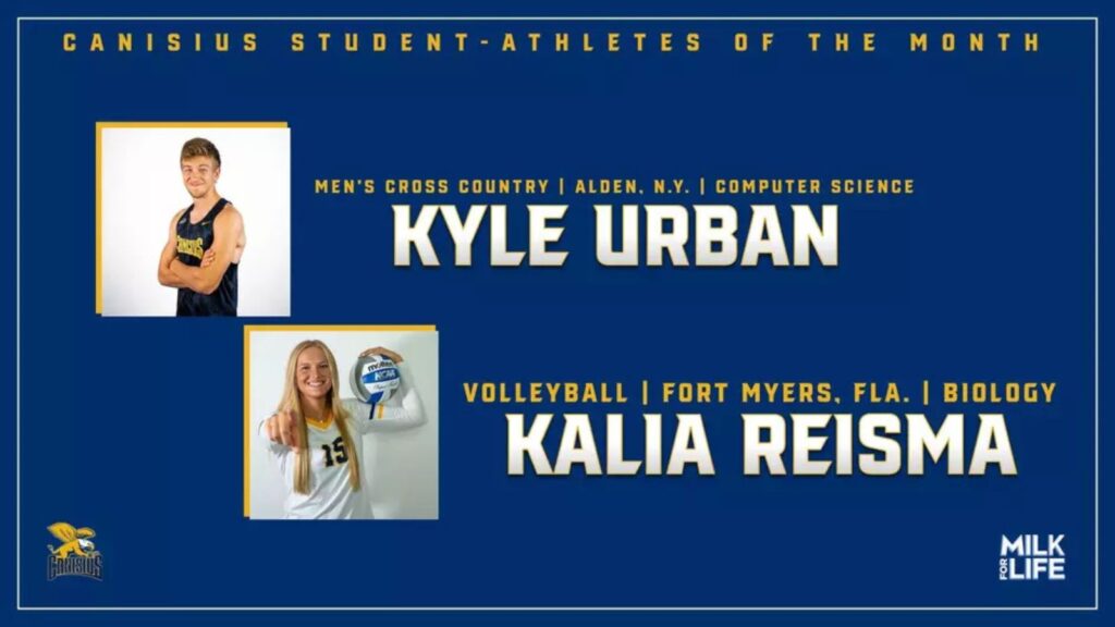 Men’s cross country and track senior Kyle Urban and volleyball junior Kalia Reisma have been named the Milk for Life Canisius Student-Athletes of the Month for September, the athletic department announced on Tuesday.