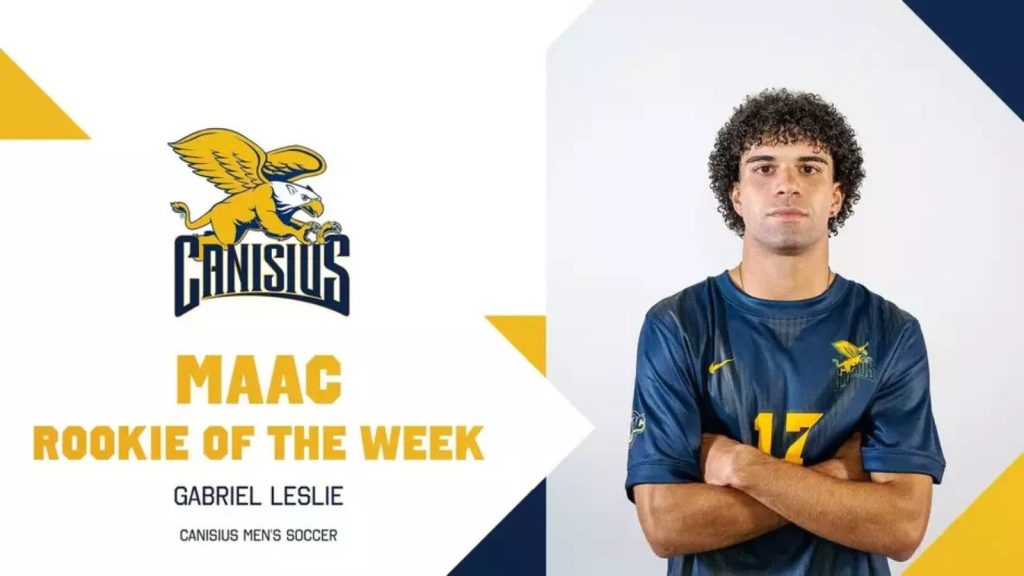 Canisius freshman forward Gabriel Leslie was named the Metro Atlantic Athletic Conference Men’s Soccer Rookie of the Week, league officials announced Monday.
