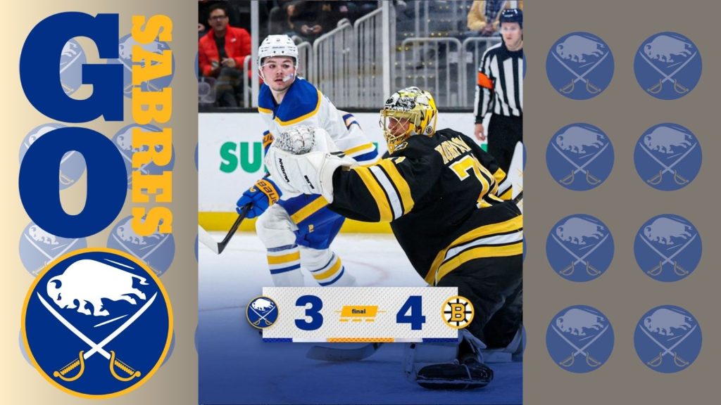 Josh Doan and Alex Tuch were the catalysts for a third-period comeback, but the Buffalo Sabres fell 4-3 in overtime to the Boston Bruins at TD Garden on Thursday.