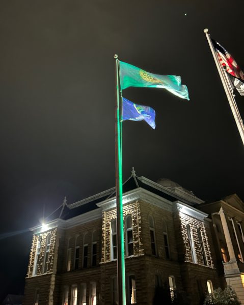 Niagara County Legislature Chairman Becky Wydysh announced today that the flagpole that carries the Niagara County and Purple Heart flags at the Niagara County Courthouse in Lockport has been illuminated green as part of “Operation Green Light for Veterans.” From November 4-11, county buildings and landmarks across the country will be illuminated green to show support for veterans and raise awareness around the resources available to them and their families.